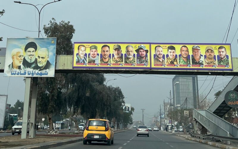 La iconografía que rodea esta zona del este de Bagdad cerca a la calle Palestina es un reflejo del poder soterrado que mantienen los grupos irregulares en el escenario político iraquí. Aquí los puentes están decorados con los retratos de los milicianos muertos en los bombardeos de EEUU que han tenido por objetivo a estas formaciones en los últimos años.