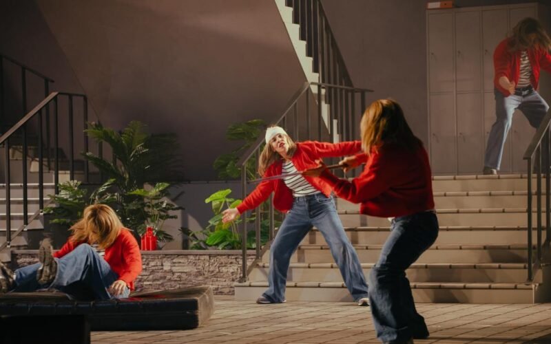 Otra cosa es el discurso que sustenta todo eso. En el centro de la historia tenemos a Evangelina (Núria Lloansi) y, en segundo término, su marido, Klaus, cuyo hijo perpetra una masacre como las vemos cada poco en EE.UU. Ella quiere saber por qué y emprenderá un viaje que atravesará la obra. En medio, están los stunts, personajes reales que nos irán explicando su vida. Alrededor, Albet y Borràs que entran y salen de la trama y ofrecen el punto de vista ideológico de la función, narradores disfrazados. Y, entrecruzándose con el conjunto, diferentes líneas argumentales que tratarán de remachar el clavo. Y es aquí donde el montaje, por momentos, chirría porque no llegamos a saber si lo que nos explican es de verdad o bien es una parodia. Hay una escena final, protagonizada por Klaus, que nos provoca muchas dudas. ¿El gran agravio es no levantar la tapa del váter para mear? ¿Las mujeres necesitan que cuatro tíos se vistan de Casíope, Perséfone, Ariadna y Artemisa con colores de Marvel para ayudarlas en su cruzada?