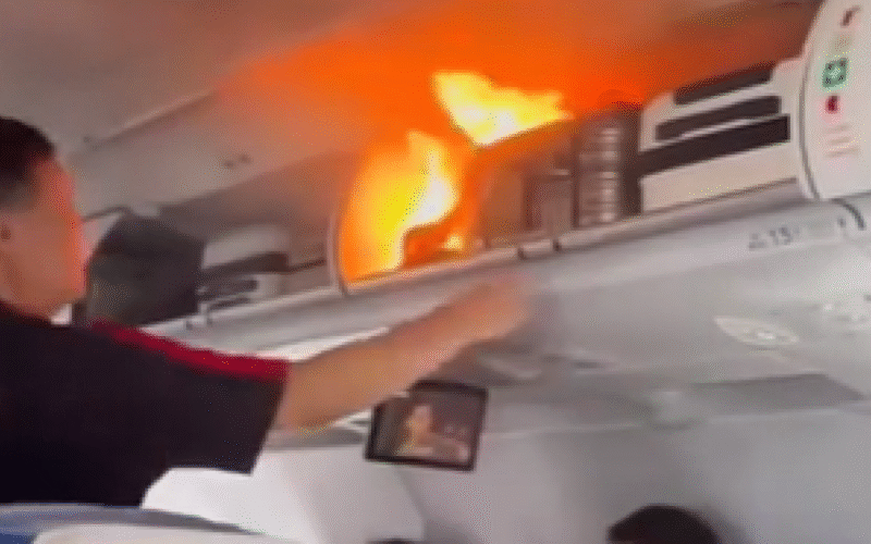 No se han reportado heridos por el incendio durante el vuelo, pero el accidente ha obligado a realizar un aterrizaje de emergencia Un vuelo de la aerolínea Air China ha tenido que aterrizar de emergencia en Shanghái después de que una batería portátil provocara un incendio en uno de los compartimentos para equipaje del avión. No se han registrado heridos y el suceso ha sido capturado en vídeo por varios pasajeros del la aeronave que se dirigía a Corea del Sur.