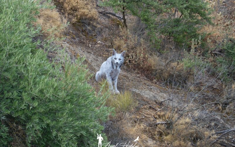El fotógrafo aficionado Ángel Hidalgo todavía está en shock. “No me lo podía creer”, rememora el momento en el que logró grabar y fotografiar a un lince de color blanco en una zona de monte de la provincia de Jaén. El encuentro se produjo a primeros de octubre, pero llevaba buscando al animal desde hace un tiempo, después de haberlo captado primero en una cámara de fototrampeo. “Fueron tan solo dos segundos, pero se notaba que la coloración era diferente a la habitual, de tonos marrones y con manchas oscuras”, explica.